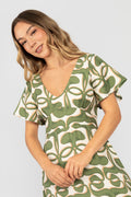 El Vestido Lara es la combinación perfecta entre frescura y elegancia natural. Con un favorecedor escote en V que estiliza el cuello y realza la silueta, y mangas sueltas que aportan movimiento y comodidad, es una pieza pensada para acompañarte con ligereza todo el día.