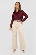 La blusa Brescia está confeccionada en seda satinada, lo que le aporta una caída estructurada y un brillo sutil que realza cualquier look. Su diseño clásico, elegante y atemporal la convierte en una prenda clave que no puede faltar en tu clóset.