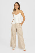 La Blusa Missy está confeccionada en seda de acabado elegante y delicado, que aporta frescura y una caída fluida. Su diseño con detalle de vuelo suma movimiento y feminidad, elevando la silueta con sutileza. El elasticado en la espalda permite un calce cómodo y adaptable, mientras que los tirantes con regulador aseguran un ajuste personalizado. Una prenda refinada y versátil, perfecta para armar varios looks modernos y elegantes.